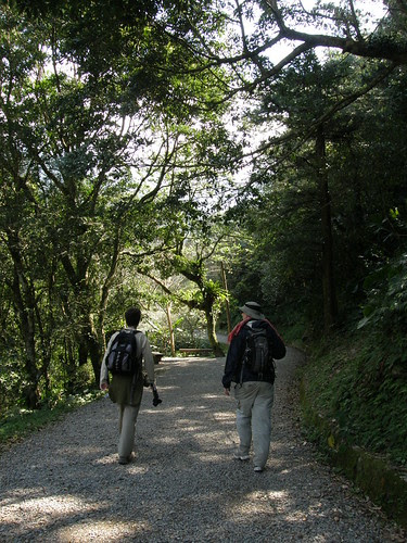 Chris, Robert, and I met at Xindian MRT station on the day of hiking, and Chris drove us to Manyueyuan. It was my first time to go to Manyueyuan. Chris and Robert had been there few times. They told me their experiences about hiking there. It seemed that I was blissed because the day of our hike was a sunny and balmy day, but their previous hikes were in myserably bad weather. I was happy and lucky to visit the beautiful forest park in a nice day. I love to see shafts of sunlights peeked into the woods.